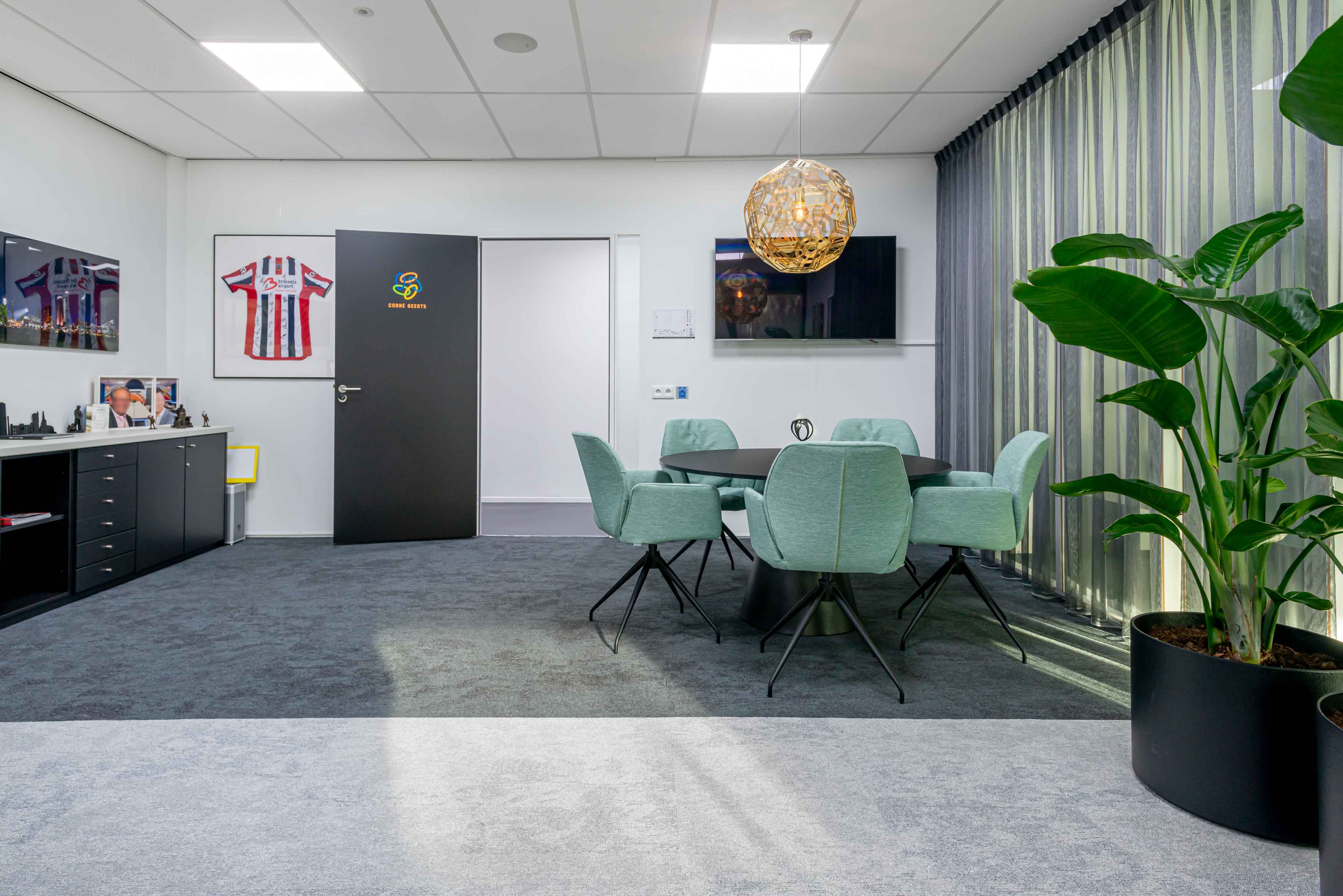 Voor deze verfgroothandel met meerdere vestigingen door het land hebben we het interieur van het nieuwe hoofdkantoor mogen realiseren. Een VERFgroothandel, dus ja, wat moet je dan... Kleur, natuurlijk. Maar met mate, want de zogezegde kermis wil je voorkomen. Een basis van wit, zwart en grijs met af en toe een accent. Dan wordt het spannend.